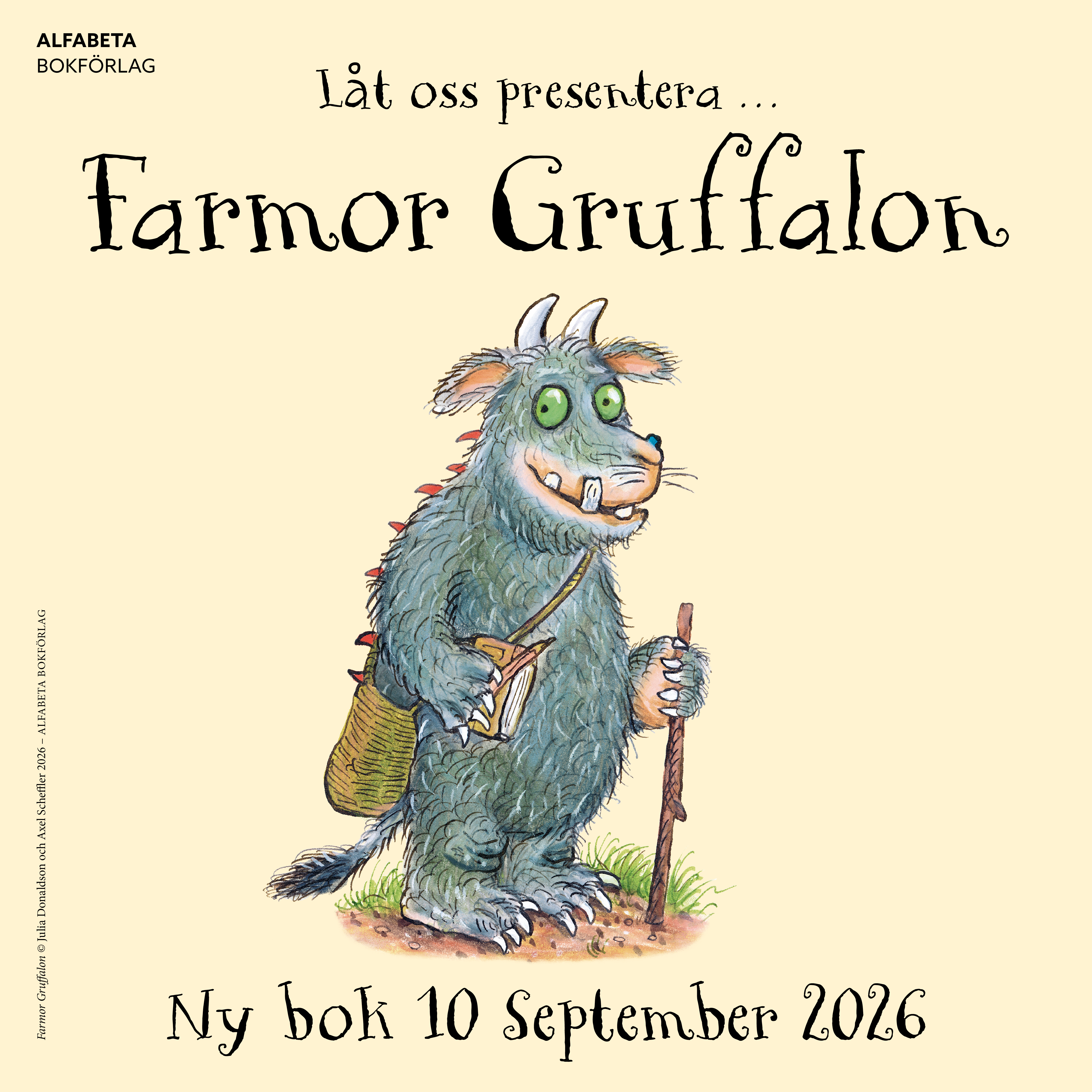 Julia Donaldson och Axel Scheffler är Storbritanniens absolut bäst säljande barnboksförfattare. Deras böcker Gruffalon och Lill-Gruffalon har sålt i sammanlagt 18,2 miljoner exemplar världen över och är moderna klassiker som älskas av både barn och vuxna. Nu kommer en tredje bok!